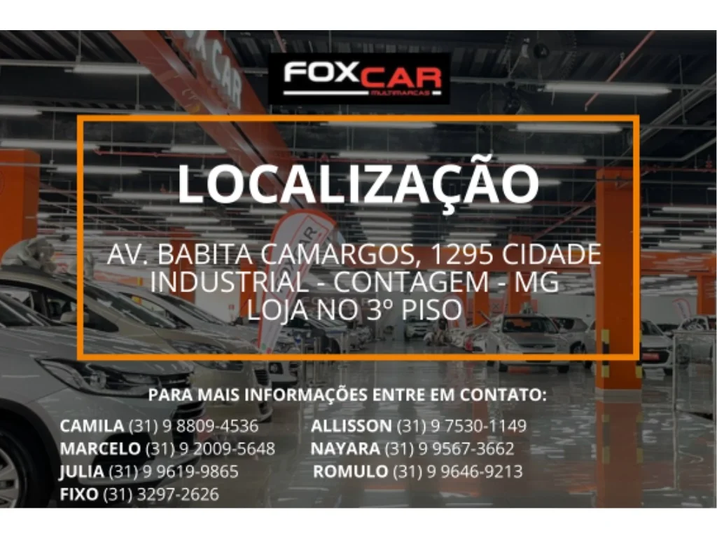 Chame nossos vendedores no WhatsApp:*Camila (31) 9 8809-4536*Marcelo (31) 9 2009-5648*Alisson (31) 9 7530-1149*Julia (31) 9 9619-9865*Nayara (31) 99567-3662*Romulo (31) 99646-9213*Fixo (31) 3297-2626Fox Car Multimarcas tradição e transparência.